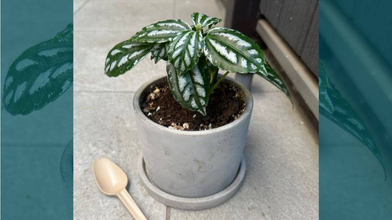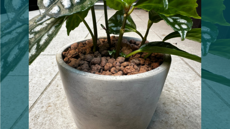 白めのセメント鉢なので赤みのあるハイドロコーンと濃緑のピレアで配色はとてもきれい。