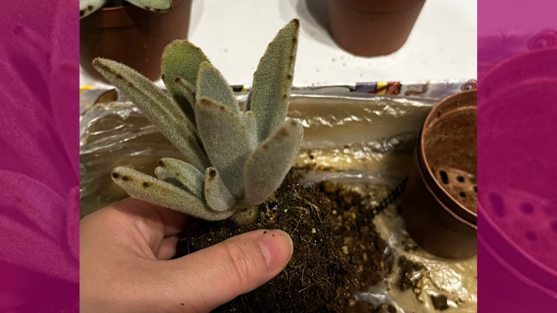 ついでに5号ポットの月兎耳さんも土の一部を交換。