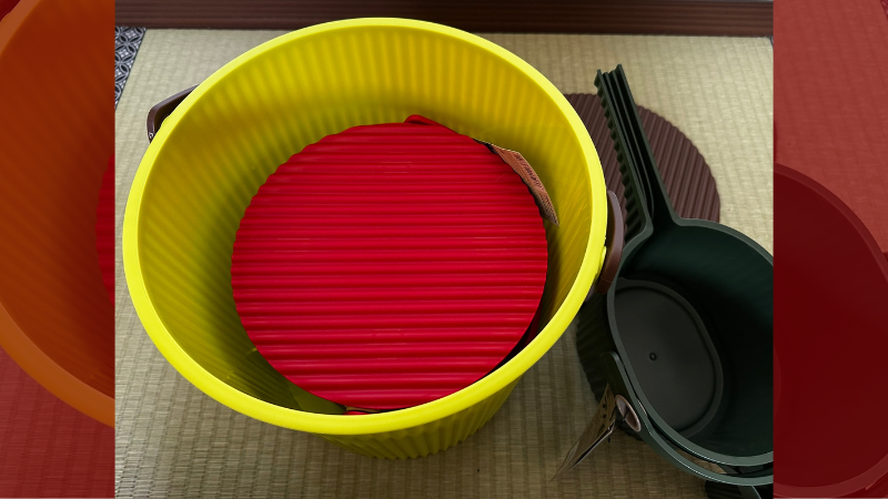 あとマルチング材を入れておく用のバケツ(収納用)。バケツそのものが欲しかったのと、今土の配合とかに使ってる金属ボウルとか入れるのに使おうかと思って。このスツールにもなるバケツは(多分サイズを選べば)入れ子にもなります。なんならこうやって届いたし。